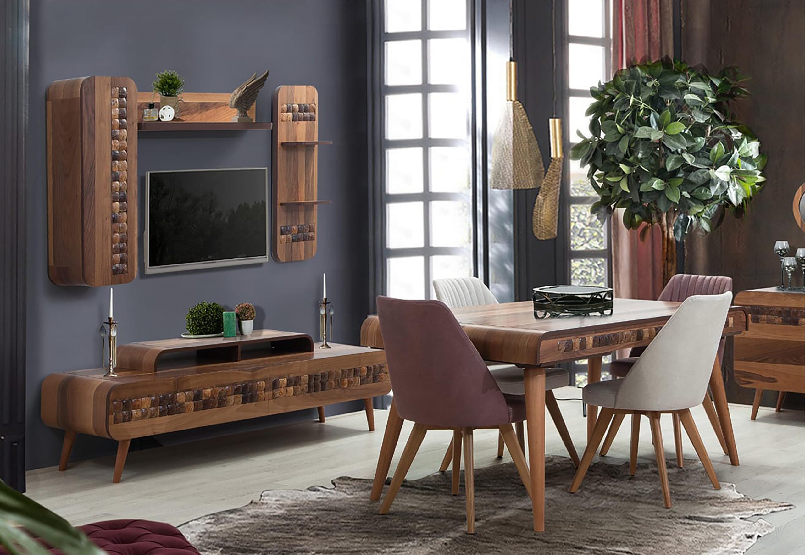 | Components | 6 Chairs, Buffet Table with Mirror, Dining Table, Full set, TV Unit |
